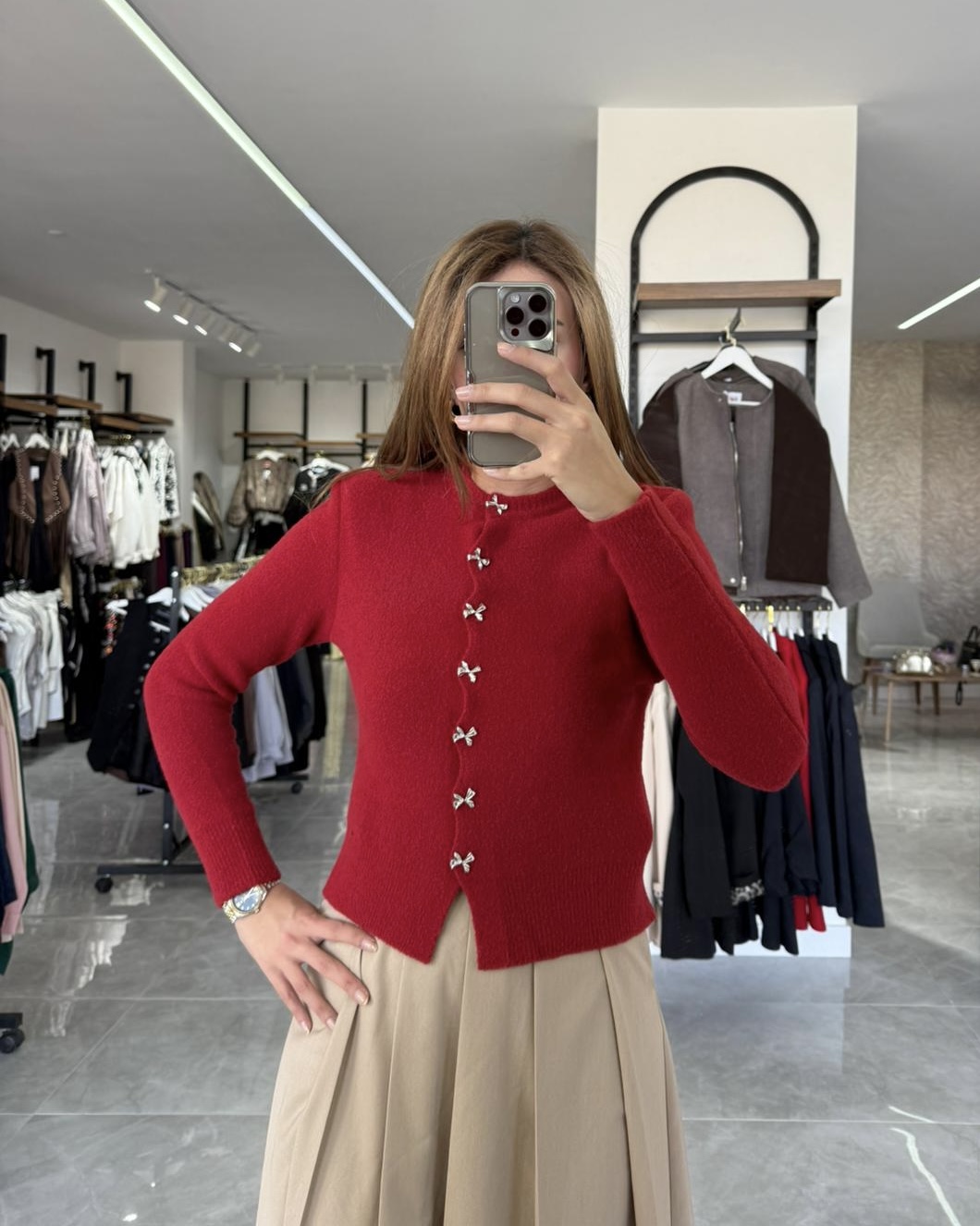 Kırmızı yumuşak hırka