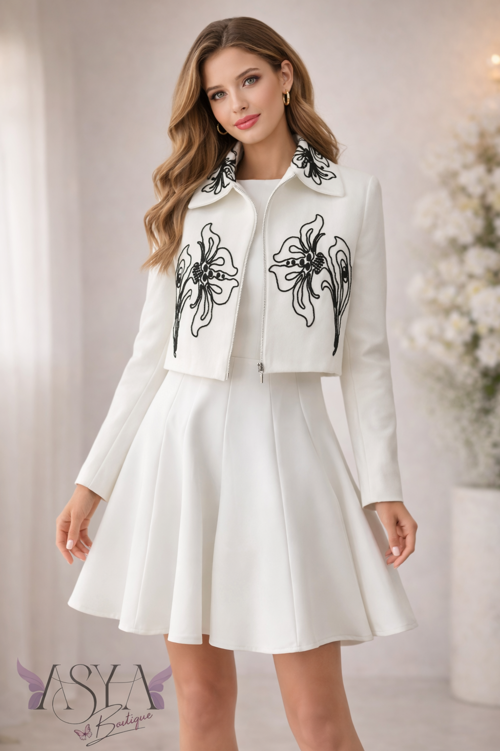 NAKIŞLI BEYAZ CEKET